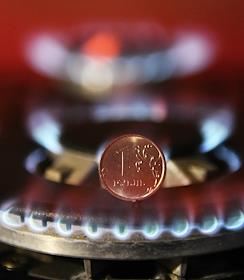 Жанровая фотография. Монета достоинством один рубль на горелке газовой плиты.