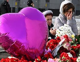 Ситуация у здания концертного зала "Крокус Сити Холл" после теракта 22 марта 2024 года. Цветы у…