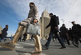 Виды Москвы. Прохожие переходят улицу на фоне здания Министерства иностранных дел (МИД) России на…
