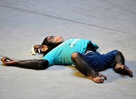 Открытая репетиция в Большом Московском цирке. Обезьяна во время репетиции.