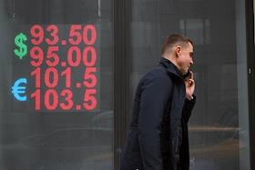 Виды Москвы. Жанровая фотография. Знак евро на световом информационном табло пункта обмена валют.