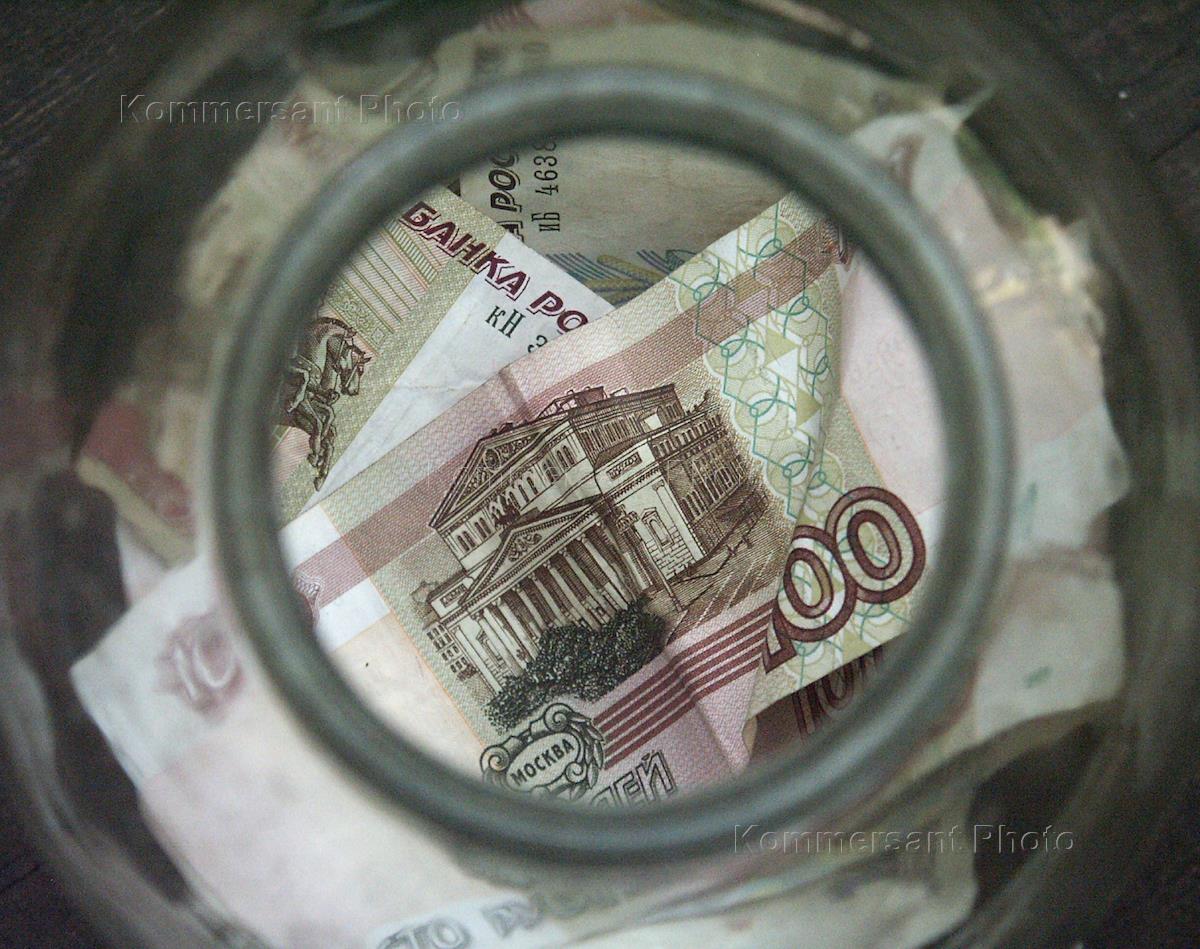 Кассир в банке держит пачку купюр достоинством в 1000 рублей.