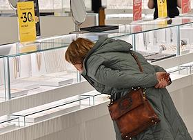Работа ювелирного магазина SUNLIGH в TЦ "МЕГА Белая дача". Жанровая фотография. Покупательница…