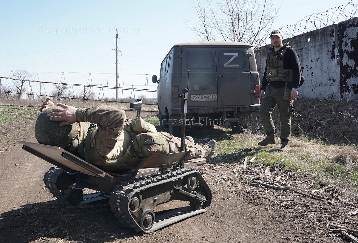 Бойцы подразделения имени Михаила Архангела во время тестирования на полигоне штурмовых роботов,…