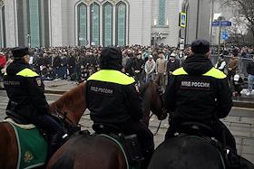 Праздничные мероприятия в день Ураза Байрам в Московской Соборной мечети. Сотрудники полиции перед…