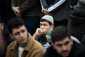 Праздничные мероприятия в день Ураза Байрам в Московской Соборной мечети. Верующие перед началом…
