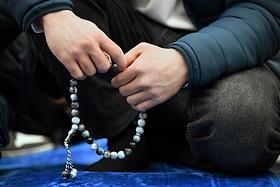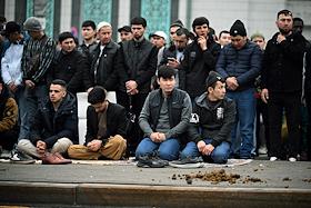 Праздничные мероприятия в день Ураза Байрам в Московской Соборной мечети. Верующие во время…