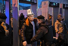 Праздничные мероприятия в день Ураза Байрам в Московской Соборной мечети. Верующие проходят сквозь…