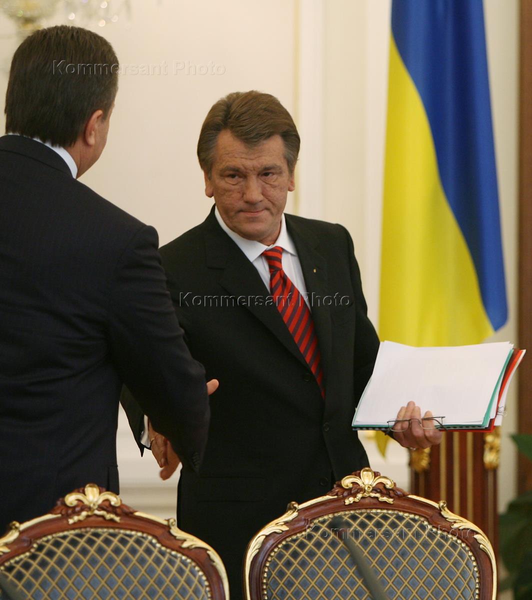Президент Украины Виктор Ющенко (справа) и премьер-министр Украины, лидер Партии регионов Украины…