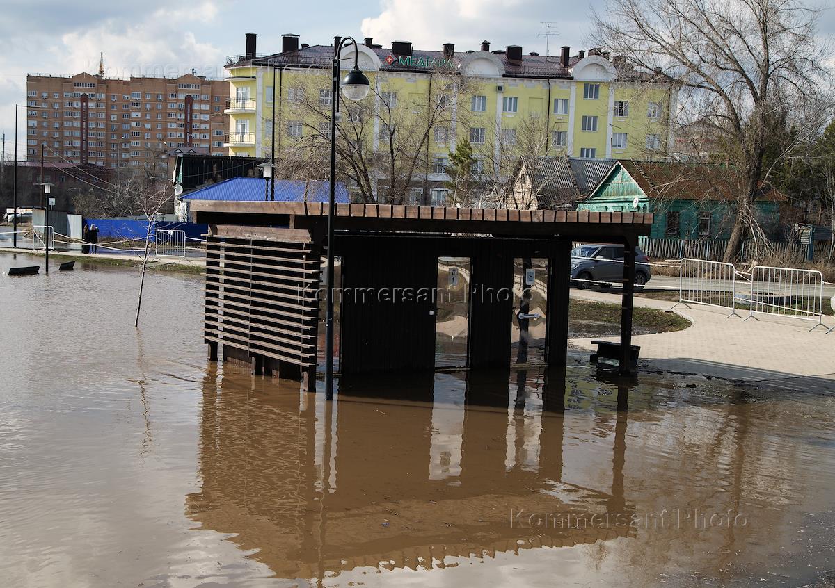 Последствия наводнения в Оренбургской области. Подтопление западной части набережной в районе…