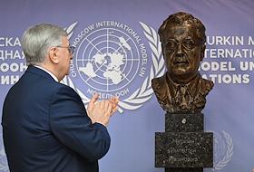 Церемония открытия бюста дипломату Виталию Чуркину в новом корпусе МГИМО МИД России.