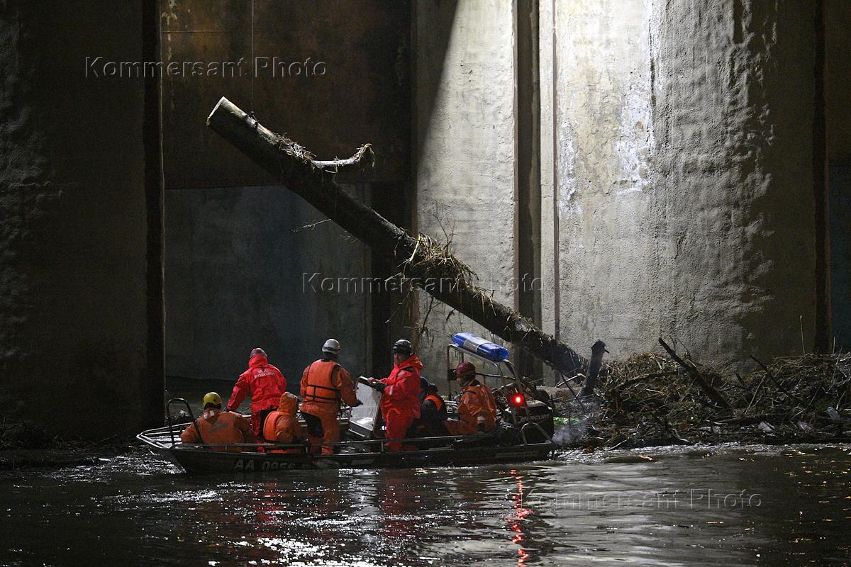 Последствия повышения уровня воды в реке Тобол. Спасатели во время устранения затора на главном…