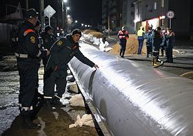 Паводок в Кургане. Сотрудники МСЧ России во время установки водоналивных рукавных противопаводковых…