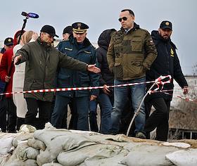 Министр МЧС России Александр Куренков и губернатор Курганской области Вадим Шумков посетили дамбу по ул. Климова в Кургане.