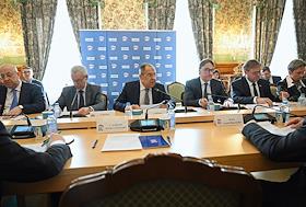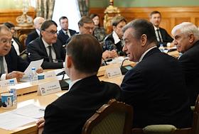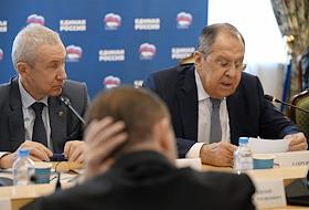 Политика Заседание Комиссии Генерального совета партии "Единая Россия" по международному сотрудничеству и поддержке соотечественников за рубежом в Доме приемов МИД России.