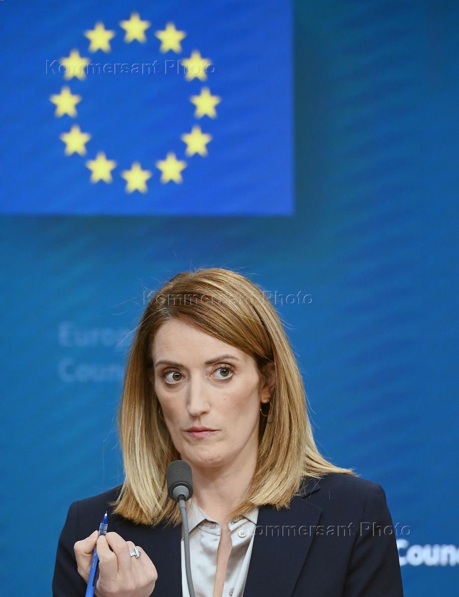 Саммит Европейского Совета (ЕС) в Брюсселе. Президент Европейского парламента Роберта Метсола во…