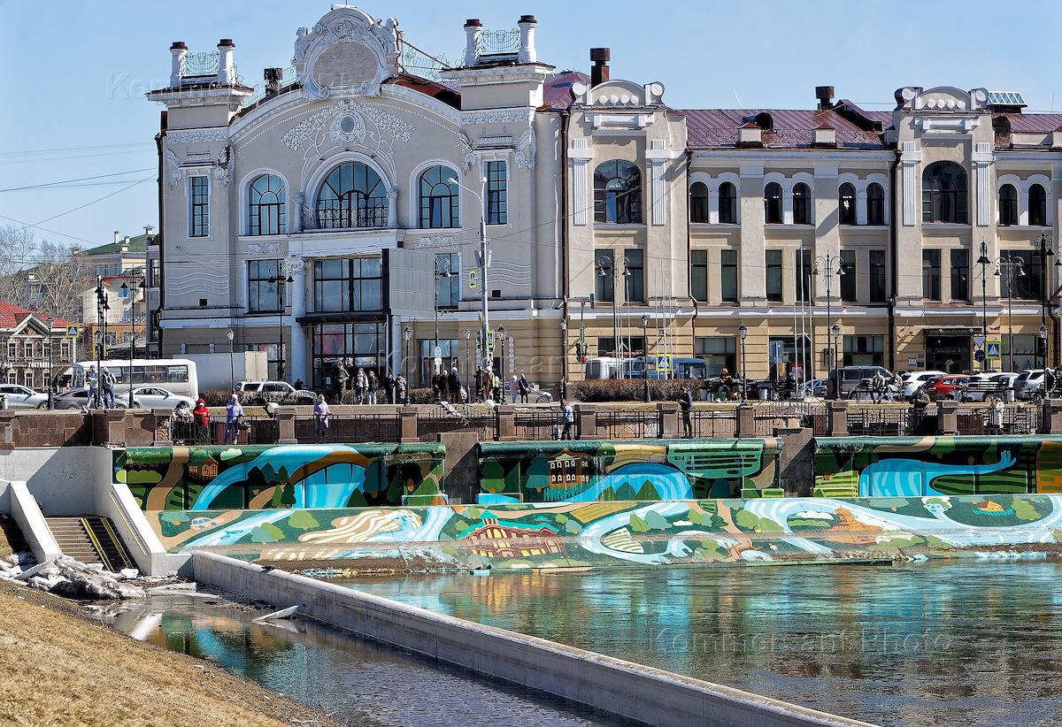 Виды Томска. Жанровая фотография. Ледоход на реке Томь. Молодые люди на набережной.