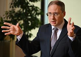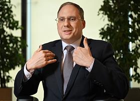 Заместитель министра промышленности и торговли России Алексей Груздев во время интервью.