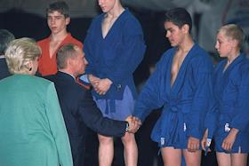 Президент России Владимир Путин поздравляет победителей первого международного юношеского турнира по…