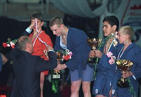 Президент России Владимир Путин награждает победителей первого международного юношеского турнира по…