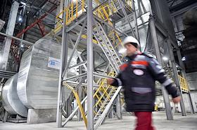 Экономика и бизнес Жанровые фотографии. Работа завода по производству цемента АО «Искитимцемент» в городе Искитиме, Новосибирской области. Торжественный ввод в эксплуатацию рукавного фильтра на колосниковом холодильнике вращающеёся печи №7 на АО «Искитимцемент», входящего в группу компаний «Сибирский цемент».