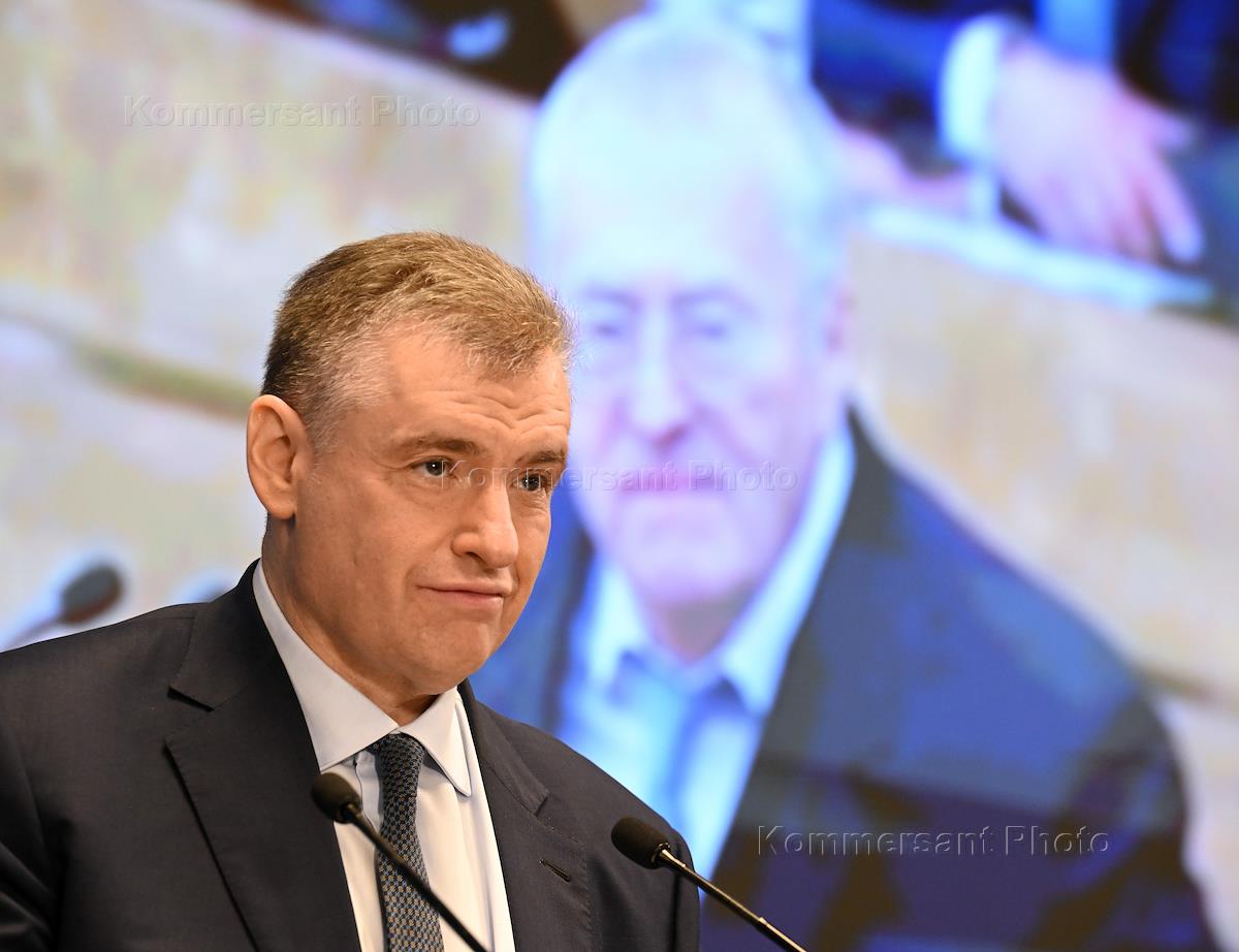 Политика Всероссийский слет Либерально-Демократической партии России (ЛДПР) в отеле "Русские сезоны". Председатель ЛДПР, руководитель фракции ЛДПР в ГД России Леонид Слуцкий во время выступления на тему: "Стратегия развития ЛДПР до 2026 года и на дальнейший период".