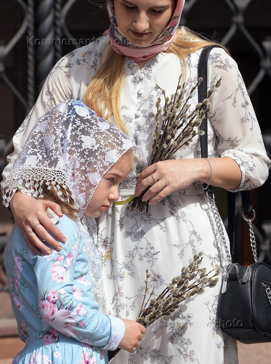 Празднование Входа Господня в Иерусалим (Вербное воскресенье). Верующие во время обряда освящения…