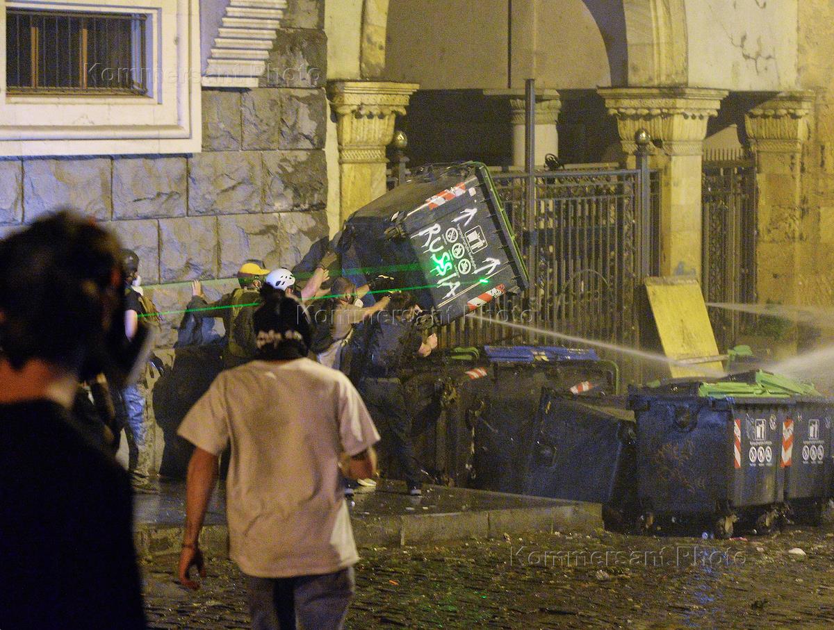 Акция протеста против принятия закона об иноагентах у здания парламента Грузии.