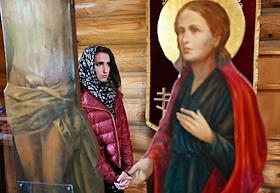 Великая Суббота. Богослужение в храме в честь иконы Божией Матери "Державная". Жанровая фотография.