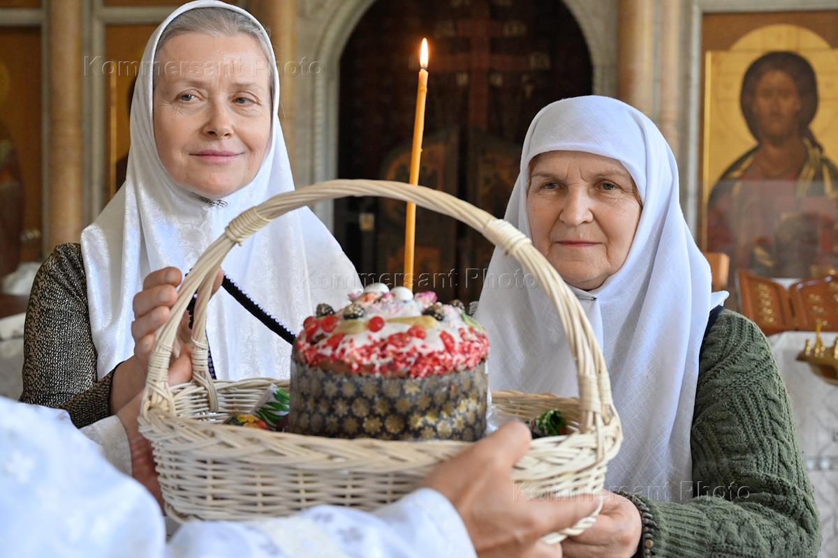 Религия Великая Суббота. Чин освящения пасхальных куличей, яиц и пасхи в канун Светлого Христова Воскресения в церкви Николая Чудотворца на Берсеневке в Верхних Садовниках.