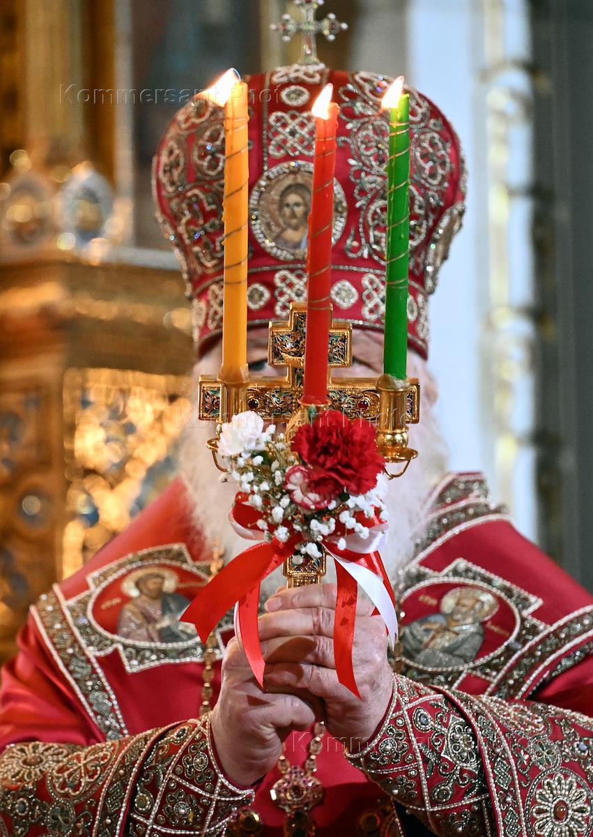 Праздничное Пасхальное богослужение в кафедральном соборном храме Христа Спасителя. Патриарх…