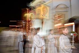 Праздничное Пасхальное богослужение в Вознесенском кафедральном соборе Новосибирска. Крестный ход.