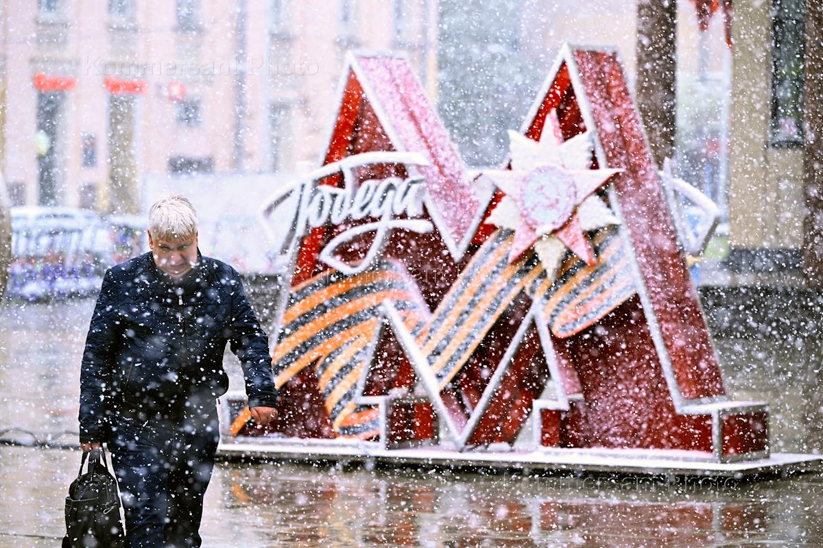 Снегопад в Москве. Жанровая фотография. Декоративная конструкция возле станции Московского…