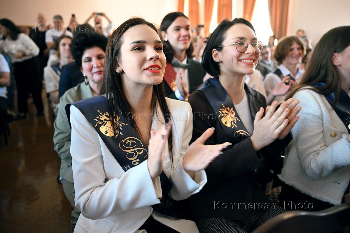 Праздник "Последний звонок" для выпускников в "Школе № 1251 имени генерала Шарля де Голля". Жанровая…