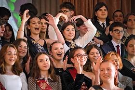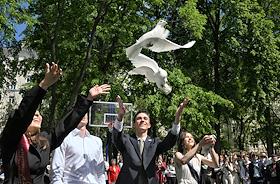 Праздник "Последний звонок" для выпускников в "Школе № 1251 имени генерала Шарля де Голля".…