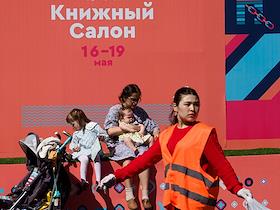 XIX Международный Санкт-Петербургский книжный салон на Дворцовой площади. Посетители книжного салона.