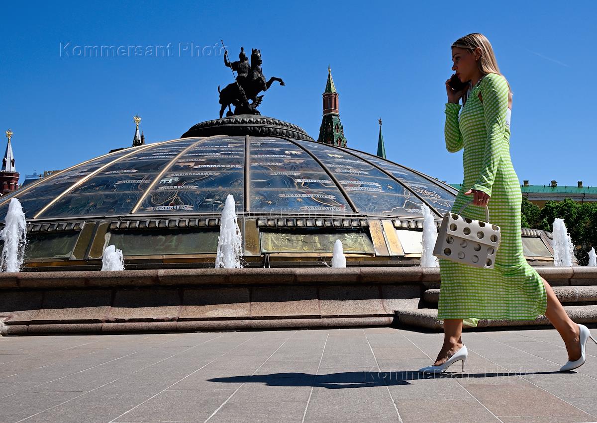 Жанровая фотография. Виды Москвы. Скульптура Георгий Победоносец на куполе торгового центра "Охотный…