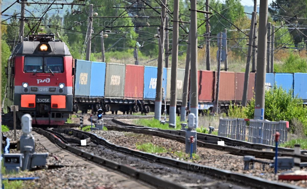 Пресс-тур по Байкало-Амурской магистрали (БАМ). Жанровая фотография. Грузовые контейнеры во время…