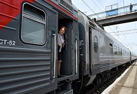 Пресс-тур по Байкало-Амурской магистрали (БАМ). Поезд на станции Тайшет. Жанровая фотография.