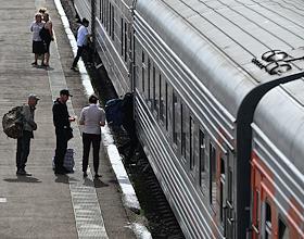 Пресс-тур по Байкало-Амурской магистрали (БАМ). Станция Тайшет. Жанровая фотография. Пассажиры во…