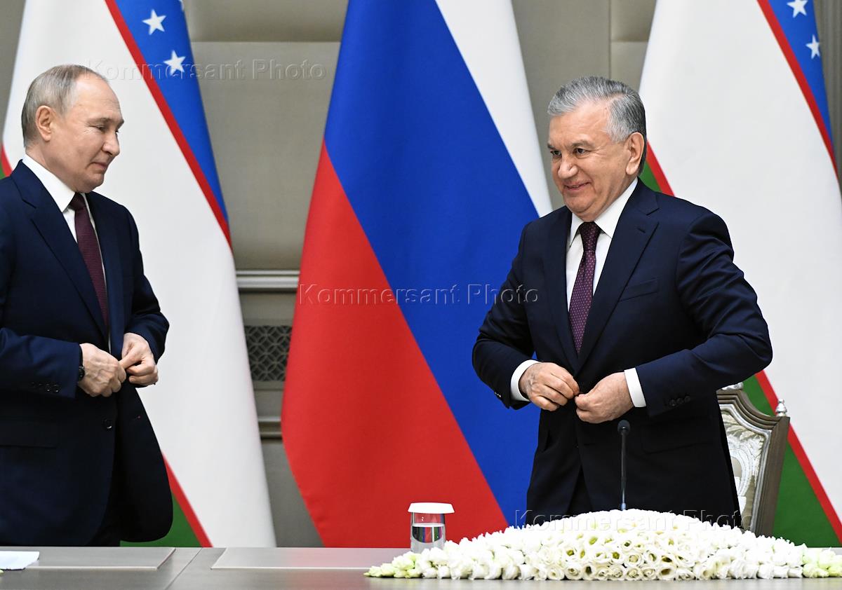 Рабочая поездка президента России Владимира Путина в Узбекистан. Церемония подписания документов о…