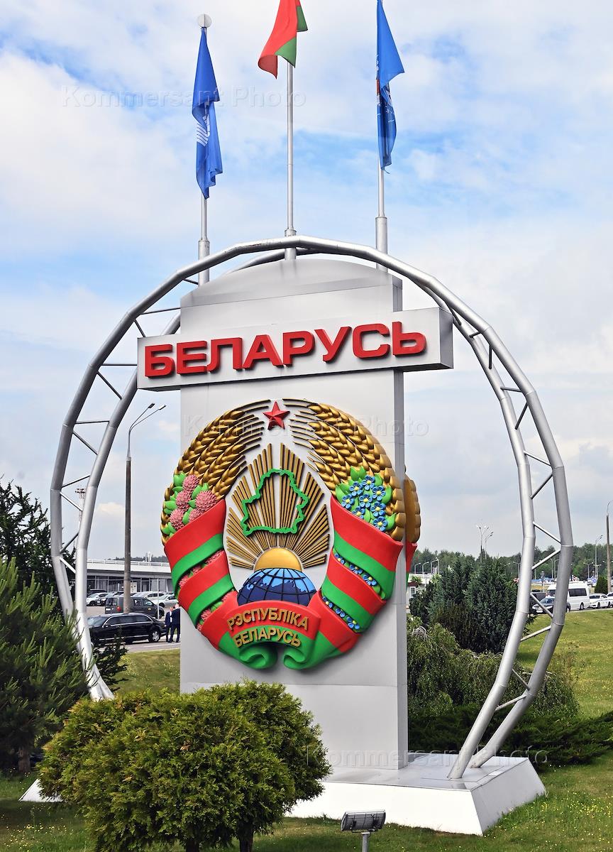 Виды Минска. Жанровая фотография. Стелла "Беларусь" возле здания Национального аэропорта "Минск"