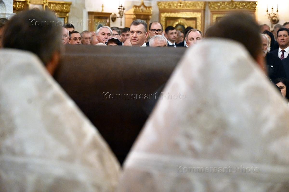 Церемония прощания с депутатом Государственной думы России Артуром Чилингаровым в Преображенской церкви Храма Христа Спасителя.