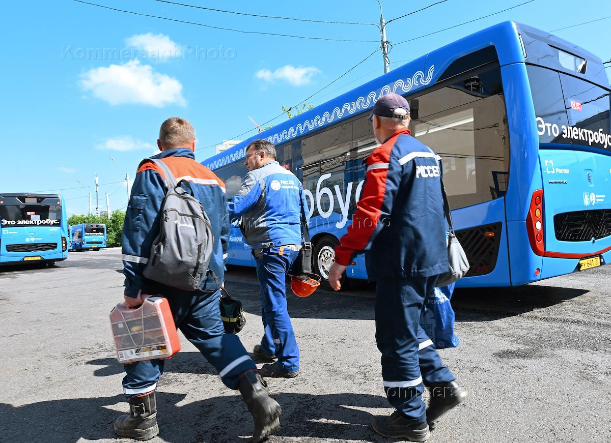 Экономика и бизнес Презентация электробуса новой поставки от ПАО "КАМАЗ" КамАЗ-6282 в обновленном дизайне для городского транспорта Москвы на территории центрального филиала "Мосгортранс".