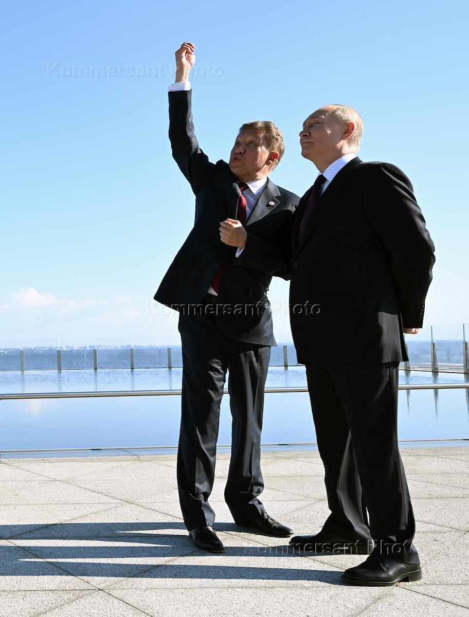 Политика Рабочая поездка президента Владимира Путина в Санкт-Петербург. Президент России Владимир Путин и председатель правления ПАО "Газпром" Алексей Миллер во время посещения многофункционального делового комплекса "Лахта-центр".