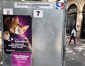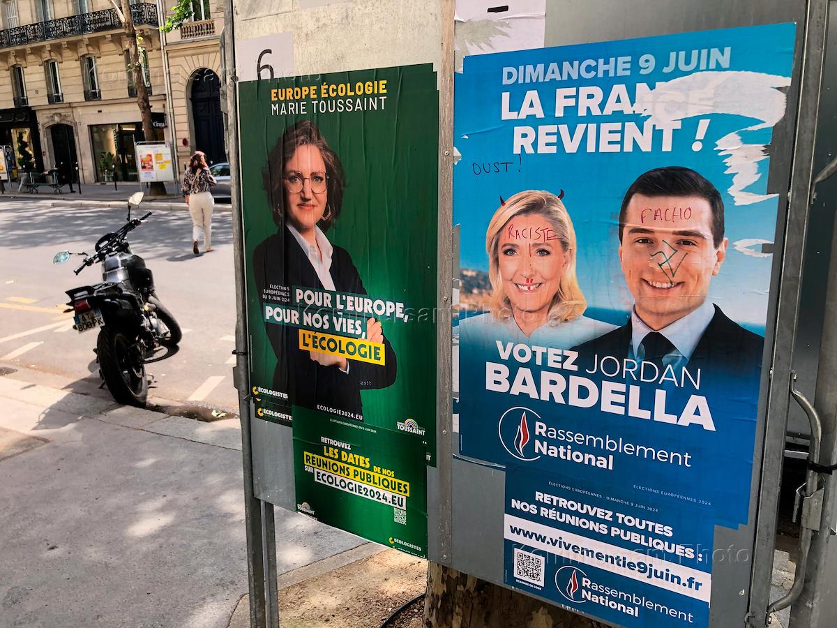 Виды Парижа во время выборов в Европарламент. Жанровая фотография. Предвыборная агитация на улицах города.
