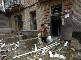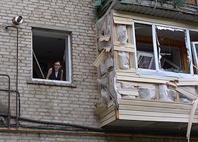 Последствия обстрела Луганска. В одном из многоэтажных домов полностью обрушился подъезд. По…
