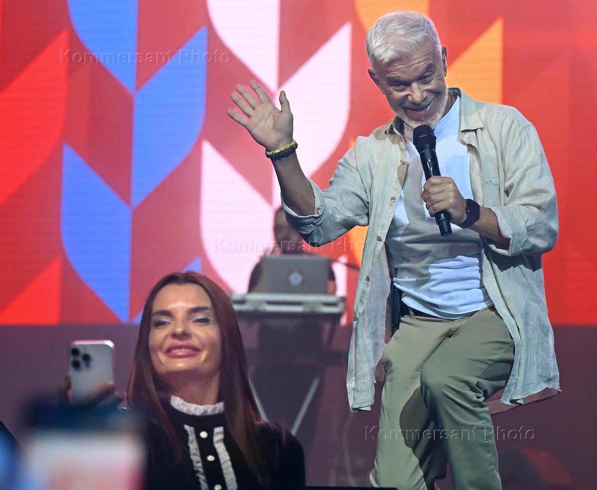 Съезд оппозиционного молдавского блока "Победа" в концертном зале "Москва". Певец Олег Газманов во…