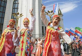 Празднование Дня России в Казани. "Парад Дружбы" на территории Казанского Кремля. Жанровая…