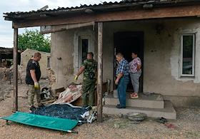 Последствия обстрела Петровского района Донецка, где погибла пожилая пара. Сотрудники ритуальной…